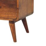 To match the other products from the curved collection, this 2 over 2 chest of drawers has been constructed from 100% solid mango wood in a rich chestnut finish and stands on 4 Nordic style legs. It features shiny accent knobs on each drawer providing easy access when storing any clothes, towels, duvets, etc. The curved design provides smooth, safe corners and gives the product a modern and contemporary look which is perfect for city homes and apartments.