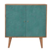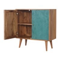 This stunning piece has been constructed from 100% solid mango wood and features nordic style legs. It provides useful storage space and is finished with shiny brass knobs. The teal cube design is partnered nicely with the finish of the wood giving an overall modern and chic look.