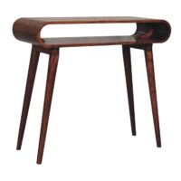 Explore our Amaya range featuring this simple open console table which is constructed from 100% solid mango wood in a honey caramel finish and features nordic style legs and smooth round edges, which will give a modern feel to the home as well as be safe around small children and animals. Display this piece beautifully in your home and allow the natural grain pattern to really shine.