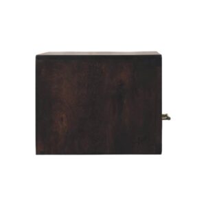 Elevate your interiors with the Arno Wall-Mounted Nightstand in Velvet Mocha—a fusion of form, function, and finesse. Handcrafted from 100% solid mango wood, this compact piece features a striking sculpted drawer front paired with an open shelf for convenient bedside storage. Its wall-mounted design frees up floor space, creating a clean, contemporary look ideal for modern homes. The rich Velvet Mocha finish adds a warm, sophisticated touch, making it a perfect companion to low beds or narrow spaces where elegance meets practicality.