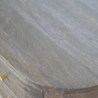 This little rounded edge bedside has been constructed from 100% solid mango wood and offers a beautiful contrast between the brass Nordic style legs and the ash Black stained finish on the body. It is definitely made to stand out and be used as an accent piece in the bedroom, but also comes in handy with 2 little drawers which can be used to store bits and pieces before bedtime.