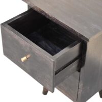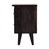 This bedside table has been constructed from 100% solid mango wood and Nordic style legs. The body of the bedside has been finished with an ash black stain and features 2 shiny knobs on the 2 drawers for easy access. This bedside is bound to spice up your bedroom.