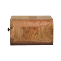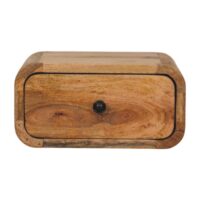 Enhance your space with this elegantly designed wall-mounted nightstand, meticulously handcrafted from 100% Solid Mango Wood in a warm Oak-ish finish. Its compact silhouette features a single drawer with a minimalistic knob, providing discreet storage while maximizing floor space. The smooth edges and natural wood grain showcase its artisanal craftsmanship, making it a perfect addition to modern or rustic interiors. Ideal for bedrooms or living areas, this sustainable piece offers both style and functionality, creating a refined and organized atmosphere in your home.