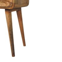 Combining mid-century elegance with practical design, this bedside table is handcrafted from 100% Solid Mango Wood in a warm Oak-ish finish. Featuring a single drawer with a subtle knob for discreet storage, it rests on tapered Nordic-style legs that add a touch of retro charm. Perfectly sized for smaller spaces, this piece offers functionality and style, making it an ideal addition to bedrooms or living areas. Its handmade, sustainable craftsmanship and natural wood grain ensure that no two pieces are exactly alike, giving your home a unique and timeless accent.