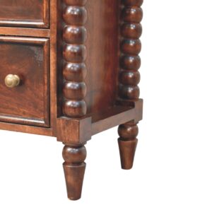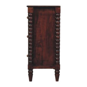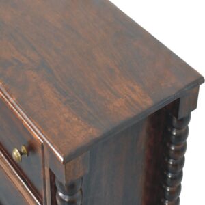 Elevate your interiors with the Barclay 3 Drawer Chest, expertly handcrafted from 100% solid mango wood and finished in a deep Winewood Oak tone. This striking piece features three generously sized drawers with antique brass knobs, framed by intricately turned legs for a touch of vintage charm. Designed to offer both style and substance, it’s ideal for storing linens, clothing, or accessories while making a refined statement in bedrooms, hallways, or living spaces.