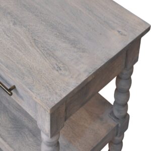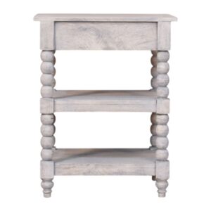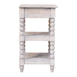Bring refined character into your home with the Barclay Side Table, handcrafted from 100% solid mango wood in a calming acid wash finish. The bold spindle legs add vintage charm, while the single drawer and dual open shelves offer practical storage for books, décor, or everyday essentials. A perfect companion for your sofa or bedside, this piece combines timeless elegance with thoughtful craftsmanship.