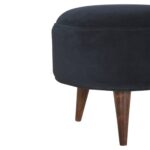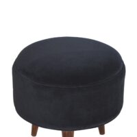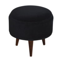 The beautiful and fashionable footstool is the perfect addition to any bedroom or living room. It is available in several different colours and has been upholstered in a luxurious black cotton velvet fabric perfect for putting your feet up, another feature of this is the 3 Nordic style legs in a walnut finish. You can use it as a handbag stand or just as an accent piece in the home.