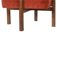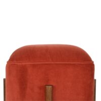Combining the best of simplicity with the timeless look of luxury, this stylish footstool is upholstered in brick red cotton velvet and can be used in any part of the home as an accent piece, as a foot rest or as extra seating around a small table. Another feature of this piece are the 4 solid wood legs in a chestnut finish, the supportive legs ensure durability, giving you a place to rest your feet for years to come.