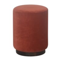 This beautiful and fashionable footstool is the perfect addition to any bedroom or living room. It is upholstered in a luxurious Brick Red cotton velvet fabric and features a Walnut finish base. Perfect for putting your feet up, using as a handbag stand, or as an accent piece in the home.