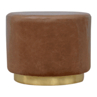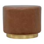 Crafted from luxurious brown buffalo leather, this modern footstool (42cm diameter, 40cm height) adds a touch of sophistication to your living room. The rich brown leather complements the sleek gold metal base for a visually striking contrast. While additional details like padding or storage are not specified, this elegant footstool offers both comfort and style, perfect for elevating your décor and providing a place to rest your feet.