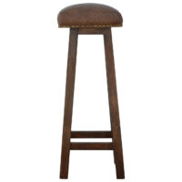 This stool is constructed from 100% solid mango wood and the seat is upholstered in multi tweed. It is a very strong and compact little wooden stool; popular for use in kitchens, bars and cafes, they are very strong yet light enough to move around easily. Other features include antique brass studs around the multi tweed seat, and square tapered legs with a smooth oak-ish finish.