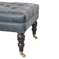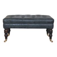 Upholstered in rich Buffalo hide leather, this bench exudes sophistication and timeless charm. The hand-tufted design adds a classic touch, while the turned wooden legs with brass caster wheels ensure both elegance and mobility. Crafted from Solid Mango Wood, it offers a durable and stylish seating solution. Perfect for living rooms, bedrooms, or entryways, this piece seamlessly blends vintage appeal with practical functionality, making it a standout addition to any space.