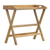 This practical and timeless butler-style writing desk combines both a modern and classic style for everyday use throughout the home. The piece has been constructed from 100% solid mango wood in an oak-ish finish and features practical foldable legs, similar to our butler tray but featuring a cutout detail and ample space to work or study on. The folding mechanism requires the tray to be removed prior to the de-assembling of the base.
