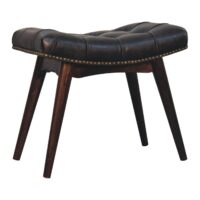 Inject character into your living space with this modern walnut footstool. The legs and frame are constructed from 100% solid mango wood in a california walnut finish and the seat is upholstered in black buffalo leather with a deep button design, this piece will offer relaxation, making it both comfortable and beautiful in the home.