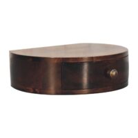 This wall-mounted bedside has been constructed from 100% solid mango wood in a california walnut finish and offers a unique shaped design with rounded edges. It can be easily mounted on the wall without the fuss of legs. It also features 1 drawer perfect for storing any bits and pieces and keeping them close before bedtime.