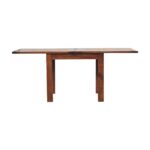 This butterfly table is a charming piece excellent for intimate dinners for two, it has a butterfly extension that stores beneath the tabletop and is easy to use. This piece has been built to last in solid mango wood with a oak-ish finish and simple functional design.