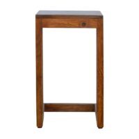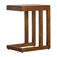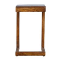 This one sided geometric side table has a refined shape and fits into any type of interior either country homes or compact city apartments. The base is constructed from 100% solid mango in a chestnut finish and is made to fit many types of woods and designs of furniture.