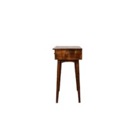 A simple & elegant charm is what this practical console table will provide. Suiting most interiors,, this 100% solid mango wood unit has been built with sustainably sourced timbers in a Nordic wood design, it has two drawers to help you keep your home organised and storing any small household objects. This has shiny knobs and has a fine chestnut finish.