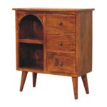 As well as being convenient and providing sufficient storage space this unit is constructed from 100% solid mango wood and have a fine chestnut finish. It features 2 shelves and 3 drawers, meaning you can neatly tuck your belongings away. Perfect for use in the living room or hallway.