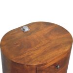 This mini solid wood bedside has been constructed from 100% solid mango wood in chestnut and offers a uniquely shaped design with rounded edges. It features 2 mini drawers which come with a shiny knob and Nordic style legs. A great, simple addition to the bedroom.