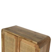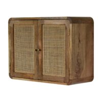 This stylish Nordic Close-knit cabinet combines a woven door front with a smooth grey wash finish body. It has a bracket which can easily be mounted on the wall without the hassle of legs. Constructed from 100% solid mango wood it features spacious drawers perfect for storage, and shiny brass knobs for easy access. Make full use of this cabinet in the living room and partner it with the rest of the collection.