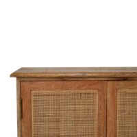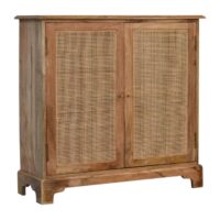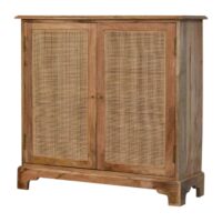 This stylish Close-knit Lounge cabinet combines 2 woven doors with a smooth oak-ish finish body. Constructed from 100% solid mango legs it features spacious drawers perfect for storage, shiny knobs on the doors, a stable base. Make full use of this cabinet in the living room and partner it with the rest of the collection.