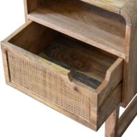 Stylish and sophisticated, this Tallin Close-knit Bedside boasts an elegant styling, perfect for adding a contemporary touch to your home. The gorgeous range is finished in an oak-ish finish with a rattan drawer front help to brighten your room some other features include an open slot, a decent size cut-out for easy access intoto the drawers and U-shape legs