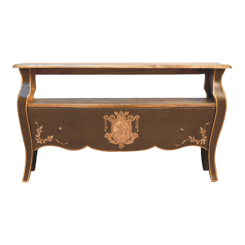 Discover elegance with the Coroner Collection Medis Unit, a French-style masterpiece in a unique greyish-green finish with a natural top and inside the drawers. Made from solid mango wood, this bedside table features a hand-painted, sketched crown crest design, adding a royal touch to your bedroom. The design is complemented by sophisticated Chantilly legs and shiny brass knobs, blending functionality with luxury. Ideal for those who cherish a blend of elegance, durability, and historical charm in their home decor, this piece is destined to become a family heirloom.
