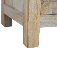 This charming sideboard has been constructed from 100% solid mango wood and features clean lines giving this range a timeless country look whilst maintaining a traditional charm to create the perfect addition to your home. This product offers excellent storage space in the form of drawers and shelves and features an oak-ish finish with shiny knob handles. Every piece of furniture is individually handcrafted and includes swing care tickets explaining the cautions and aftercare instructions.