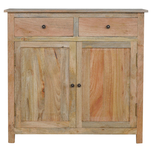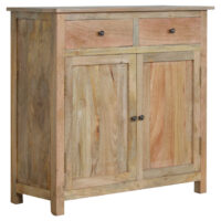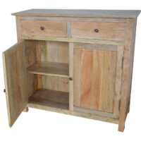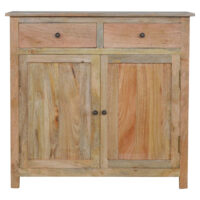 The sideboard is made from 100% solid mango wood. Clean lines give this range a modern look whilst its timeless character maintains its traditional charm to create the perfect addition to your home. This product offers excellent storage space in the form of drawers and shelves. This piece of furniture has oak-ish finish and shiny knobs.