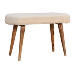 Derived from the French word for ‘curled’ or ‘ringed’ yarn or fabric. This handwoven upholstered furniture piece is made of 100% cotton and natural yarn. This bench combines nordic style legs which are constructed from 100% solid mango wood and a soft cushioned top. The perfect accent piece to add to any room in the house.