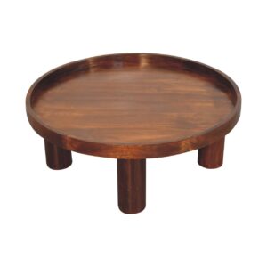 Elevate your living space with the Chic Chestnut Coffee Table, a minimalist masterpiece crafted from 100% solid mango wood. Its rich chestnut finish exudes warmth and sophistication, while the robust circular top and sturdy cylindrical legs ensure durability and timeless charm. Perfect for modern or rustic interiors, this coffee table is a statement piece designed to anchor your room with elegance and functionality.