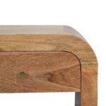 Add this Darcy Bedside to your interior, it has smooth round edges, making is child and pet friendly in the home. It is constructed from 100% solid mango wood and has one small drawer perfect to place a phone, or book in. Other features include a shiny brass knob.