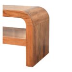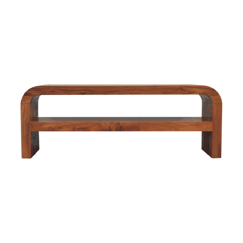 Add this Darcy Media Unit to your interior, it has smooth round edges, making it child and pet friendly in the home. It is constructed from 100% solid acacia wood in an caramel finish and features a large open drawer that can be used to store game consoles, tv boxes and more.