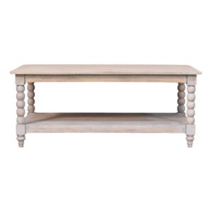 Elevate your living space with the timeless elegance of the Ellsworth Spindle Coffee Table. Handcrafted from 100% solid mango wood and finished in a soft acid wash, this table showcases beautifully turned spindle legs and a spacious open shelf for added functionality. Its warm, weathered tones and classic silhouette bring charm and character to any setting—perfect for both rustic retreats and modern homes seeking a vintage touch.