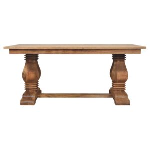 The Elmbrook Dining Table brings timeless grandeur to any dining room. Crafted from solid wood, its sculpted double pedestal base exudes elegance and strength, while the expansive rectangular top provides ample space for everyday dining or festive gatherings. With its classic silhouette and artisanal craftsmanship, this table adds a sense of heritage and sophistication to your home.