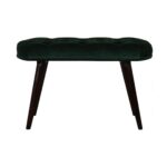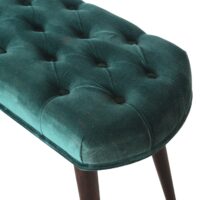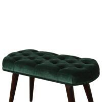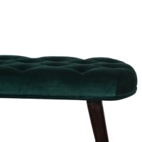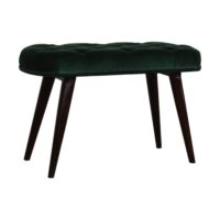 This Nordic style bench has been upholstered in a beautiful Emerald green cotton velvet fabric and features a classy deep-button design on the top. The bench stands on 4 legs constructed from 100% solid mango wood in a walnut finish and it is the perfect piece to add to your bedroom or hallway as a finishing touch in the home.