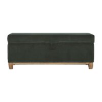 This bench will make a handy addition to the home. It has been upholstered in a emerald cotton velvet fabric and has a solid wood body and feet. A lovely and elegant piece for the home.