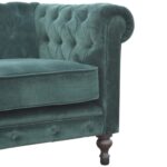 This beautiful 2 Seater Chesterfield Sofa has been upholstered in a luxurious emerald green cotton velvet and features 4 turned feet constructed from 100% solid mango wood in a walnut finish. This sofa is detailed with deep button tufts, piping and sheltering arms. This is a statement piece for the home which can be added as a pop of colour to any room in the home or can be suited well with many different styles and colours of interiors being modern or classic.