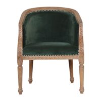 This classy occasional chair has been upholstered in a emerald velvet fabric. It features a studded design and legs constructed from 100% solid mango wood providing strength and durability. This simple yet classy piece can be incorporated in different home settings and interiors.