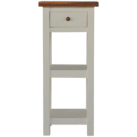This petite contemporary style 100% solid mango wood End Table is simple but attractive with an oak-ish finish. This product is artistically handcrafted in a country style using wooden pegs, grooves and bread board joints. As a center piece to the sitting room, this coffee table can’t be beaten with its country style and versatile design, which comes with chunky hand turned legs.