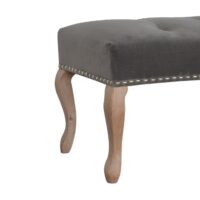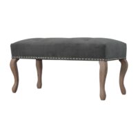 This elegant bench has been upholstered in a grey cotton velvet fabric. It features carved French style legs constructed from 100% solid mango wood providing strength and durability along with a deep button and studded design. This simple yet classy piece can be incorporated in different home settings and interiors.