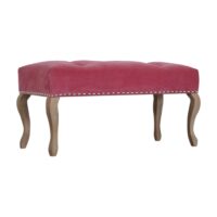 This elegant bench has been upholstered in a pink cotton velvet fabric. It features carved French style legs constructed from 100% solid mango wood providing strength and durability along with a deep button and studded design. This simple yet classy piece can be incorporated in different home settings and interiors.