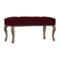 This elegant bench has been upholstered in a wine red cotton velvet fabric. It features carved French style legs constructed from 100% solid mango wood providing strength and durability along with a deep button and studded design. This simple yet classy piece can be incorporated in different home settings and interiors.