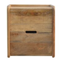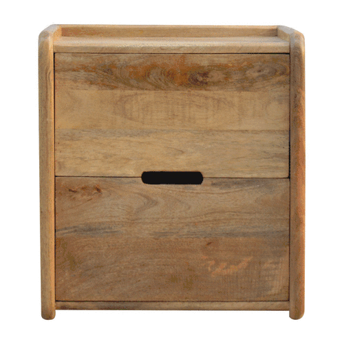 This gallery back beside has been constructed from 100% solid mango wood in an oak-ish finish finished with a coat of lacquer meaning it is durable and can withstand years of use. It features a cut out handle enabling a easy opening into 2 of the drawers which creates a clean and contemporary finish.