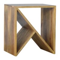 Keep your magazines and books organised all around with home with this end table. It has been constructed from 100% solid mango wood and finished in a fine oak-ish finish body. Some characteristics of this product include the unique geometric design allowing you to place any size of books and papers without any limitations. It is a very modern and versatile piece which can be used in the living room, hallway, or dining space. The perfect little addition to the home.