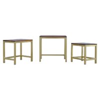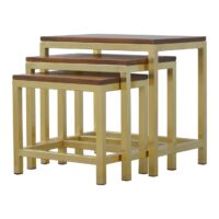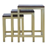 The stool set of 3 is the perfect accent piece for your home. The top has been constructed from 100% solid mango wood in a chestnut finish with a beautiful brass gold base. The 3 different sizes means they can be used together or in a different room and are convenient as they can be stacked on one another.