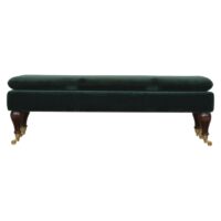 This bench is a great addition to the home. It has been upholstered in a beautiful emerald green cotton velvet fabric and has castor feet in walnut finish to allow easy movement of the bench. A lovely and elegant piece for the home.