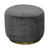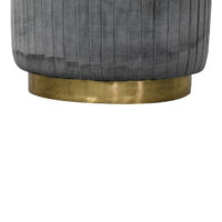 This beautiful and fashionable footstool will make the perfect addition to any bedroom or living room. It has been upholstered in a luxurious grey cotton velvet fabric with a pleated design featuring a gold brass base. Perfect for putting your feet up, using as a handbag stand, or as an accent piece in the home.