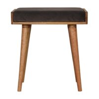 This footstool features a tray-style design and 4 Nordic-style legs constructed from 100% solid wood. It has been upholstered in a grey cotton velvet top that works as a comfortable seat and can be incorporated into many different interior styles as it offers a very clean and modern design, along with providing a nice contrast between the material and wood.